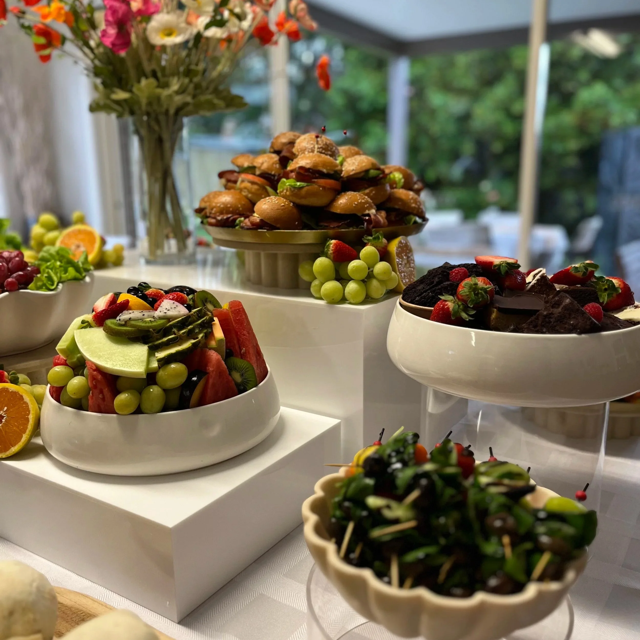 Want to elevate it even further? A fresh, seasonal fruit platter, artfully arranged and bursting with colour, can be added at an additional cost — the perfect little extra to make it truly unforgettable.